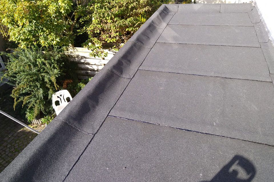 Op deze afbeelding van na de renovatie, is te zien dat wij de luchtbulten hebben verwijderd en het dak hebben voorzien van een nieuwe toplaag.